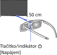 2. Když používáte aktivní 3D brýle poprvé, přidržte brýle zhruba 50 cm od televizoru, zapněte televizor a přidržte tlačítko/indikátor (Napájení) na brýlích po dobu 2 sekund.