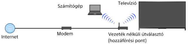 - - Az országtól/régiótól függően előfordulhat, hogy az 5 GHz-es sáv nem támogatott. Amennyiben az 5 GHz-es sáv nem támogatott, a televíziókészülék csak a 2,4 GHz-es sávon keresztül tud a vezeték nélküli útválasztóhoz (hozzáférési ponthoz) csatlakozni.