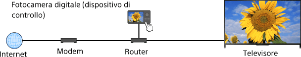 (Durante l’uso del Telecomando touchpad, premere sul touchpad. A seguire, premere di nuovo sul touchpad per passare a “Connessione a Internet” per i dettagli.)Utilizzare il dispositivo di controllo per iniziare a riprodurre il contenuto sullo schermo televisivo.
