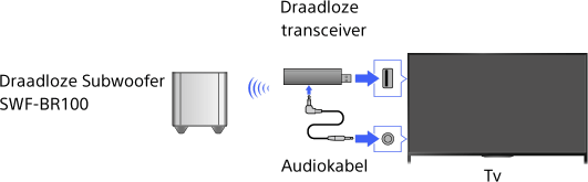 Sluit de draadloze transceiver die geleverd is bij de draadloze subwoofer SWF-BR100 aan om de draadloze subwoofer te gebruiken.