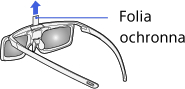 Używając aktywnych okularów 3D po raz pierwszy, zdejmij folię ochronną z baterii.