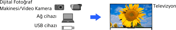 4K veya üstü çözünürlüğe sahip bir fotoğraf 4K çözünürlükte (3840×2160) görüntülenebilir. Fotoğraf makinesinde depolanan yüksek çözünürlüklü fotoğrafları görüntülemek için TV’nin HDMI IN’ine HDMI 4K çıkışı destekleyen bir dijital fotoğraf makinesi/video kamera bağlayabilirsiniz. Bağlı USB aygıtlarında veya ev ağınızda depolanan yüksek çözünürlüklü fotoğrafları da görüntüleyebilirsiniz.