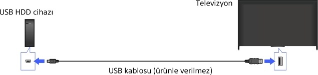 - Bir USB HDD cihazının bir USB hub ünitesi üzerinden bağlanması desteklenmez. Cihazı doğrudan televizyona bağlayın.