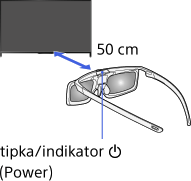 Kada Aktivne 3D naočale koristite prvi puta, držite naočale na udaljenosti manjoj od 50 cm od TV-a, uključite TV, zatim pritisnite i držite tipku/indikator