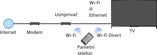 (Kada koristite Daljinski upravljač s dodirnom plohom, pritisnite dodirnu plohu. Zatim ponovno pritisnite touchpad kako biste došli na »Povezivanje s internetom« i pročitali detalje.)Spojite mobilni uređaj na kućnu mrežu na koju je spojen i televizor.