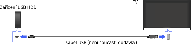 - Připojení zařízení USB HDD prostřednictvím hubu USB není podporováno. Připojte zařízení přímo k televizoru.