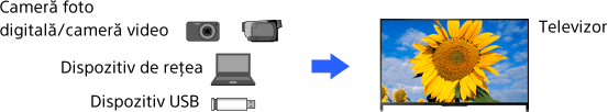 O fotografie cu rezoluţie 4K sau mai ridicată poate fi afişată la rezoluţie 4K (3840 × 2160). Puteţi conecta o cameră foto digitală/cameră video care acceptă ieşire HDMI 4K la portul HDMI IN al televizorului, pentru a afişa fotografii de înaltă rezoluţie memorate în cameră. De asemenea, puteţi afişa fotografii de înaltă rezoluţie stocate în dispozitive USB conectate sau în reţeaua dvs. proprie.