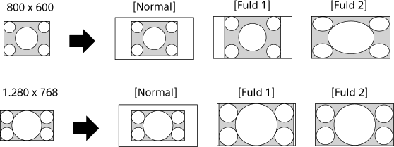 - Forstørrer billedet til at fylde en 16:9-skærm, hvor det originale billede bevares bedst muligt.