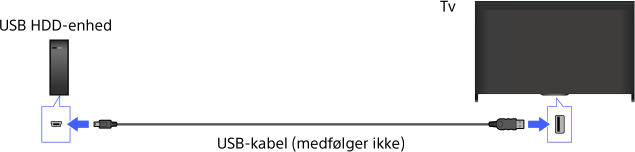 • Tilslutning af en USB HDD-enhed via en USB-hub understøttes ikke. Slut enheden direkte til tv'et.
