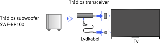 Tilslut den trådløse transceiver, der fulgte med den trådløse subwoofer SWF-BR100 for at bruge den trådløse subwoofer.