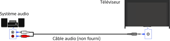 Raccordez un système audio (par exemple, un amplificateur) au téléviseur à l’aide d’un câble audio.