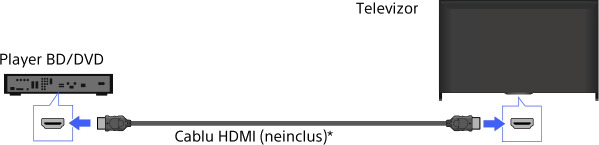 Conexiunea HDMI este recomandată pentru o calitate optimă a imaginii. Dacă playerul BD/DVD dispune de un jack HDMI, conectaţi-l prin intermediul unui cablu HDMI.