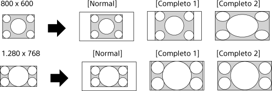 - Muestra una imagen de formato 4:3 en su tamaño original. Las barras laterales se muestran para ocupar toda la pantalla de formato 16:9.