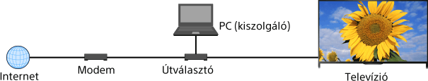 Egy kiszolgálón (például PC) tárolt fénykép/zene/videó fájlokat is lejátszhat, ha az ugyanahhoz az otthoni hálózathoz csatlakozik, amelyhez a tv-készülék is.