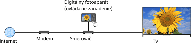 Môžete prehrávať súbory fotografií, hudobné súbory a video súbory v ovládacom zariadení (napr. v digitálnom fotoaparáte) na obrazovke TV prijímača priamym ovládaním daného zariadenia. Ovládacie zariadenie musí byť kompatibilné s Rendererom.