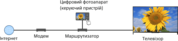 Можна відтворювати на екрані телевізора фотографії, музичні композиції та відеофайли, що зберігаються на керуючому пристрої (наприклад, на цифровому фотоапараті), керуючи пристроєм напряму. Керуючий пристрій також має підтримувати функцію Renderer.