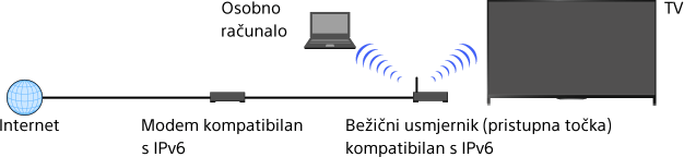 Ako je usluga Vašega operatera kompatibilna s IPv6, televizor možete spojiti na internet protokolom IPv6.
