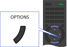 Paspaudus mygtuką OPTIONS atveriamas parinkčių meniu, kuriame pateikiama greita prieiga prie rodomame lange veikiančių funkcijų. (Parinkčių meniu elementai skiriasi atsižvelgiant į pasirinktą langą.) Taip suteikiama spartesnė prieiga prie funkcijų nei iš Namų meniu.