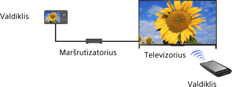 Įjungę vaizdo atkūrimo įtaiso funkciją, tiesiogiai valdydami įrenginį televizoriaus ekrane galite atkurti valdiklyje (pvz., skaitmeniniame fotoaparate) įrašytus nuotraukų, muzikos, vaizdo failus. Be to, mobilusis įrenginys (pvz., išmanusis telefonas) per namų tinklą gali veikti kaip televizoriaus nuotolinio valdymo pultelis.