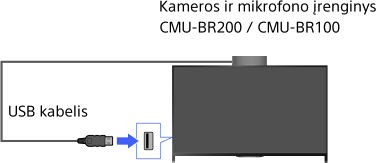 - Galite naudoti tiktai atskirai įsigyjamą kameros ir mikrofono įrenginį CMU-BR200 / CMU-BR100. Kiti modeliai nepalaikomi.