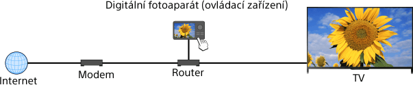 Můžete přehrávat soubory fotografií/hudby/videa v ovládacím zařízení (např. digitálním fotoaparátu) na obrazovce televizoru přímým ovládáním tohoto zařízení. Ovládací zařízení by mělo být také kompatibilní s rendererem.