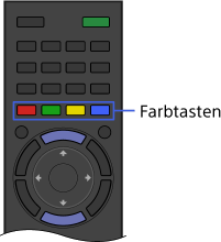 - In der Abbildung rechts sehen Sie ein Beispiel. Die Reihenfolge der Farbtasten hängt von der Region bzw. vom Land ab.