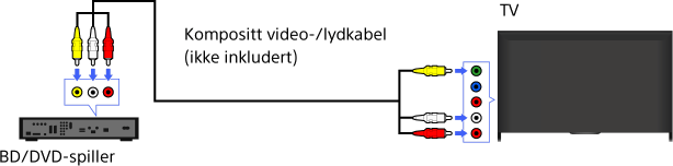 Hvis BD-/DVD-spilleren din har kompositt-kontakter, kobler du den til med en kompositt video-/lydkabel.