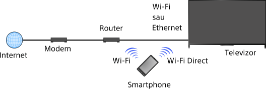 • Puteţi, de asemenea, să conectaţi aplicaţia „TV SideView” la televizor utilizând Wi-Fi Direct. Activaţi funcţia Wi-Fi Direct a televizorului selectând [Setări] → [Reţea] → [Wi-Fi Direct] → [Pornit], apoi navigaţi la pagina [Setări Wi-Fi Direct] a televizorului selectând [Setări] → [Reţea] → [Setări Wi-Fi Direct].