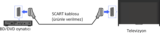 BD/DVD oynatıcınızda bir SCART jakı (soketi) varsa, bunu bir SCART kablosu kullanarak bağlayın.