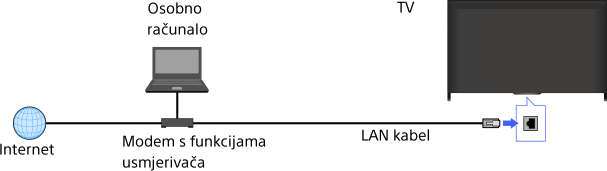 Žična LAN veza omogućuje vam pristup internetu i vašoj kućnoj mreži. Priključite LAN kabel na svoj televizor.