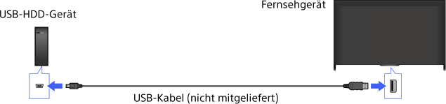 - Das Anschließen eines USB-HDD-Geräts über einen USB-Hub wird nicht unterstützt. Schließen Sie das Gerät direkt an das Fernsehgerät an.