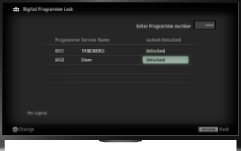 στη ρύθμιση [Κωδικός PIN], πληκτρολογήστε τον κωδικό πρόσβασης και, στη συνέχεια, επιλέξτε [Κλείδωμα ψηφιακού προγράμματος] ή [Κλείδωμα δορυφορικού προγράμ.] → το πρόγραμμα που θέλετε να αποκλείσετε → [Κλείδωμένο].