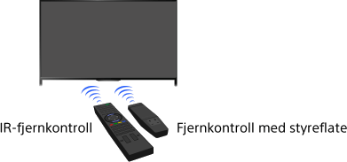 For å betjene TV-en, kan du enten bruke den infrarøde (IR) fjernkontrollen eller fjernkontrollen med styreflate. Levering av en fjernkontroll med styreflate sammen med TV-en avhenger av din modell/region/land. En ekstra fjernkontroll med styreflate er tilgjengelig.