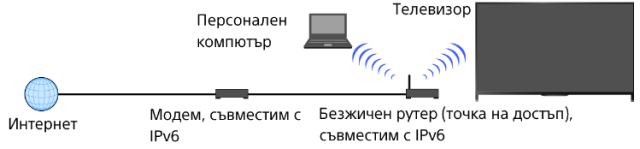 Ако услугата на доставчика ви е съвместима с IPv6, можете да свържете телевизора с интернет чрез IPv6.