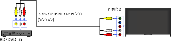 אם נגן ה-BD/DVD שלך מצויד בשקעי קומפוזיט, חבר אותו בעזרת כבל וידאו/שמע קומפוזיט.