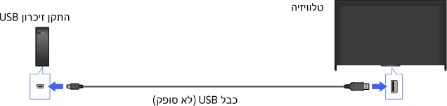 - לא ניתן לחבר התקן זיכרון USB דרך מפצל USB. חבר את ההתקן ישירות אל הטלוויזיה.