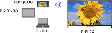באפשרותך להציג את המסך של התקן נייד (כגון טלפון חכם או מחשב לוח) בטלוויזיה, לצפייה בתמונות, סרטי וידאו או אתרי אינטרנט.
