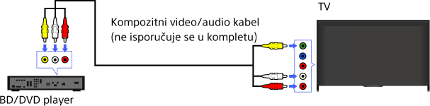 Ako vaš BD/DVD player ima kompozitne utičnice, spojite ga pomoću kompozitnog video/audiokabela.