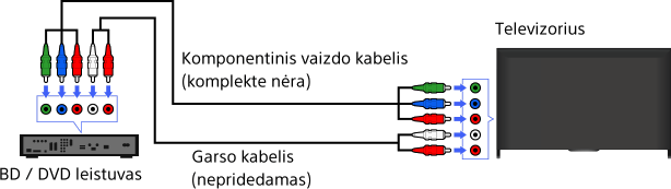 Jei BD ar DVD leistuve yra įtaisytos komponentinės vaizdo jungtys (lizdai), prijunkite jas prie televizoriaus komponentiniu vaizdo kabeliu ir garso kabeliu.