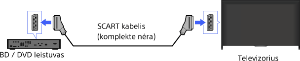 Jei BD ar DVD leistuve yra įtaisyta SCART jungtis (lizdas), prijunkite prie jos SCART kabelį.