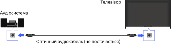 Підключення до телевізора аудіосистеми (наприклад, домашнього кінотеатру) із цифровим входом за допомогою оптичного аудіокабелю.