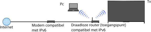 Als uw provider ondersteuning biedt voor IPv6, kunt u met deze tv via IPv6 verbinding maken met het internet.