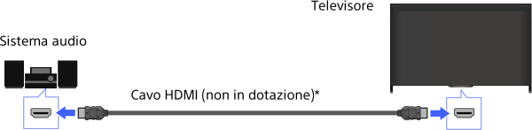 Collegare un sistema audio (es. sistema home theatre) con l’uscita HDMI al televisore, usando un cavo HDMI.