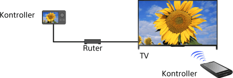 Ved å aktivere Renderer-funksjonen, kan du spille av foto-/musikk-/videofiler i en kontroller (f.eks. digitalt stillbildekamera) på TV-skjermen ved å betjene enheten direkte. En mobil enhet (f.eks. smarttelefon) kan også fungere som TV-ens fjernkontroll over hjemmenettverket.