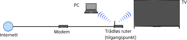 - - 5 GHz-båndet er kanskje ikke tilgjengelig avhengig av regionen/landet ditt. Hvis 5 GHz-båndet ikke støttes, kan TV-en bare koblet til en trådløs ruter (tilgangspunkt) ved hjelp av 2,4 GHz-båndet.