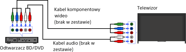 Jeśli odtwarzacz BD/DVD jest wyposażony w gniazda (złącza) komponentowe wideo, podłącz go do telewizora za pomocą kabla komponentowego wideo i kabla audio.