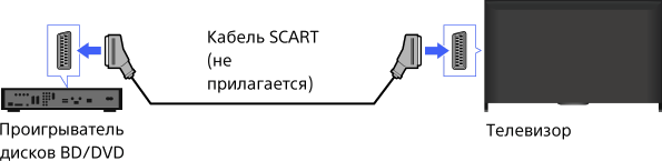Если проигрыватель BD/DVD оснащен гнездом SCART, подключите его с помощью кабеля SCART.