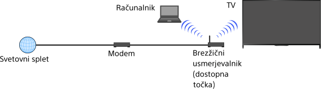 - - Frekvenčni pas 5 GHz v nekaterih regijah/državah ni na voljo. Če frekvenčni pas 5 GHz ni podprt, se lahko TV z brezžičnim usmerjevalnikom (ali dostopno točko) poveže samo v frekvenčnem pasu 2,4 GHz.