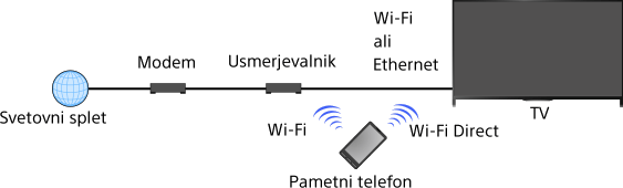 • Aplikacijo »TV SideView« lahko povežete s televizorjem tudi s funkcijo Wi-Fi Direct. Funkcijo Wi-Fi Direct vklopite v televizorju tako, da izberete [Nastavitve] → [Omrežje] → [Wi-Fi Direct] → [Vključeno], nato poiščite stran [Nastavitve Wi-Fi Direct] tako, da izberete [Nastavitve] → [Omrežje] → [Nastavitve Wi-Fi Direct].