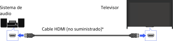 Conecte un sistema de audio (por ejemplo, sistema de cine en casa) con salida HDMI al televisor mediante un cable HDMI.